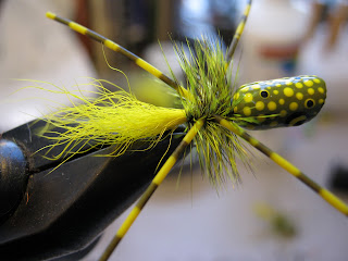 From time to time, we get requests to do a step by step of our poppers. I did a very basic one here a while ago regarding the stippling of eyes and spots on the body. This time around as I was tying for Christmas presents, I decided to do some quick shots as I added material to the size 10 Fish Foolin' Frog popper. Sorry about the lighting. Best I could do. All materials used, aside from the popper bodies, are from Hareline Dubbin, Inc. Please feel free to comment or ask questions. There are no secrets here and we are always willing to help others. Why reinvent the wheel if you don't have to? Not that I am an expert but I have learned some stuff through trial and error. Mostly, I have learned what not to do!